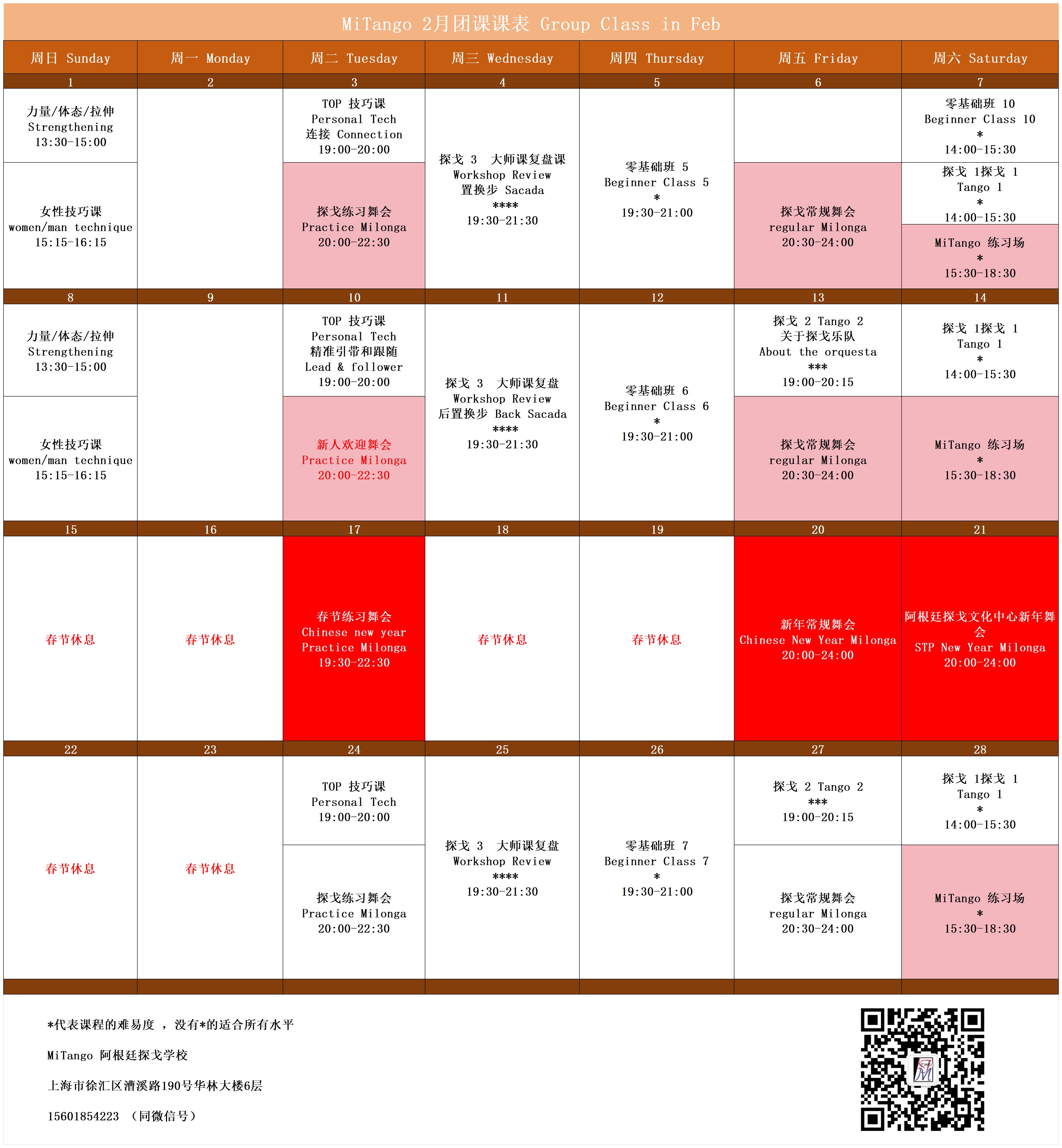 MiTango 每周有常规探戈舞会,练习场,练习舞会,还会定期举办学员的主题舞会活动,大师表演舞会,各类大师营,大家可以学习娱乐两不误。点击这里查看往期各类舞会活动。